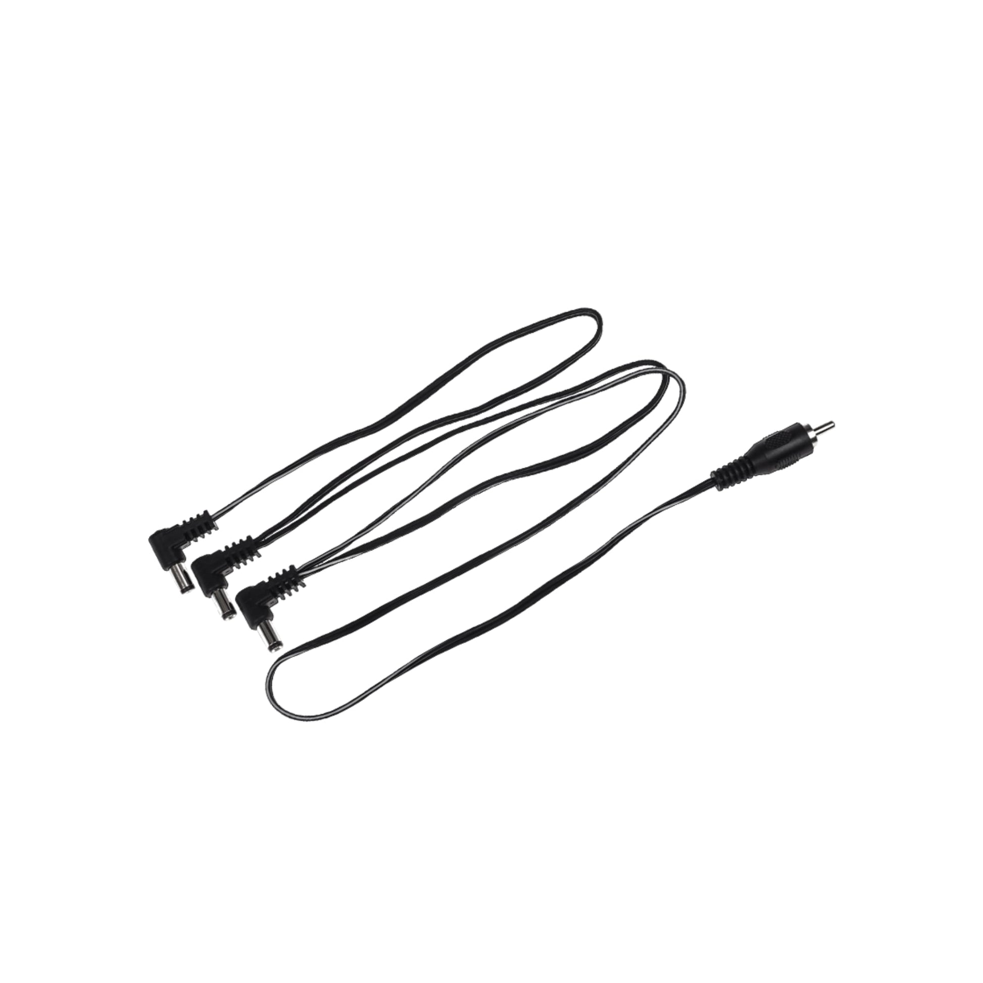 This Flex cable makes it possible to power three pedals using only one outlet of the power supply. You need to make sure that the three pedals can all be powered by the same voltage and that they all use the most common 5,5/2,1mm centre negative DC plug, the BOSS standard. On this daisy chain the first DC plug is 50cm from the plug which goes into the power supply’s outlet. There’s 30cm in-between the first and the second DC plug and also 30cm in-between the second and third DCplug. The total length of this special Flex cable is approx. 110cm. The longer distance between the plugs gives you more freedom in placing the pedals you’d like to power with the daisy chain on your pedalboard.