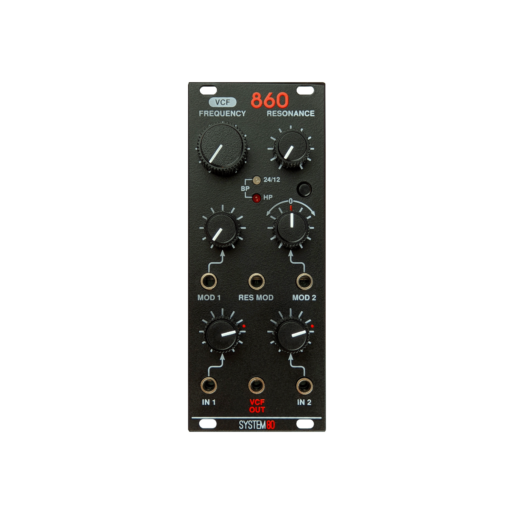 The System80 860 MK2 is a 10 HP voltage controlled filter for Eurorack. It is an interpretation of the multi-mode filter found in the Roland Jupiter-6, a 1980s analogue polysynth.