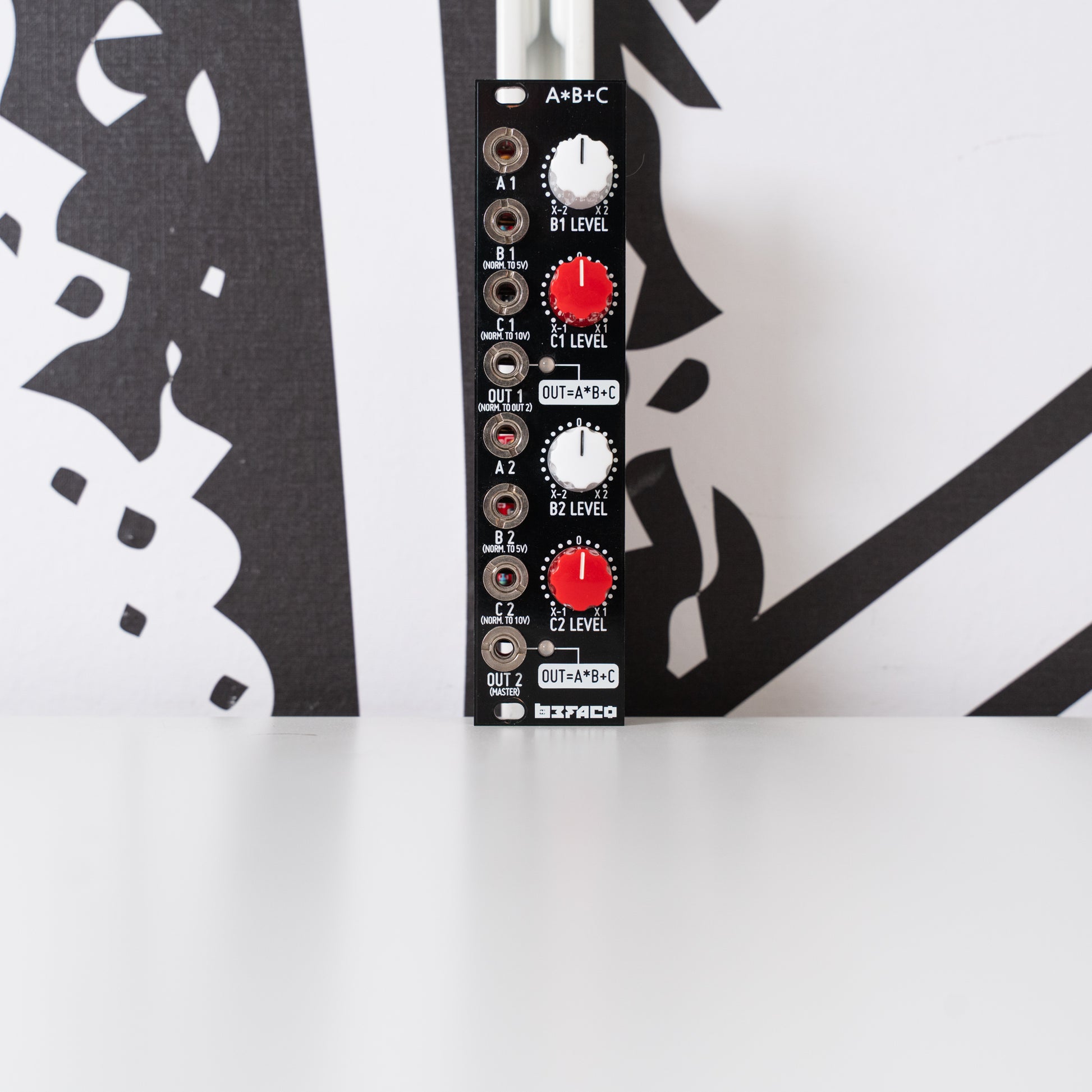 A*B+C is a dual, four-quadrant multiplier with VC Offset that can act as Dual Ring Modulator, Dual VCA and Four Channel Mixer. Each section can perform the analog multiplication of two signals (A and B) and add an offset (C).