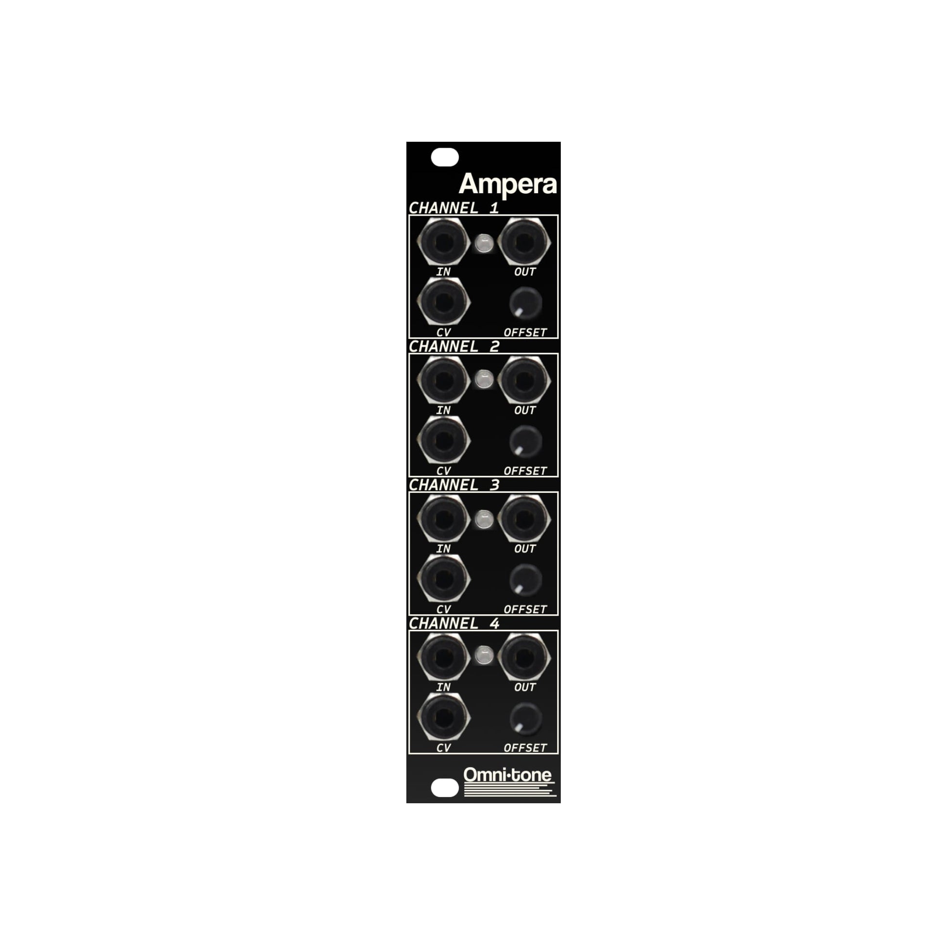 You can never have too many voltage controlled amplifiers VCAs! (voltage controlled amplifiers). Ampera offers 4x VCAs in a tiny 6HP footprint with manual potentiometer control mixed with CV control.