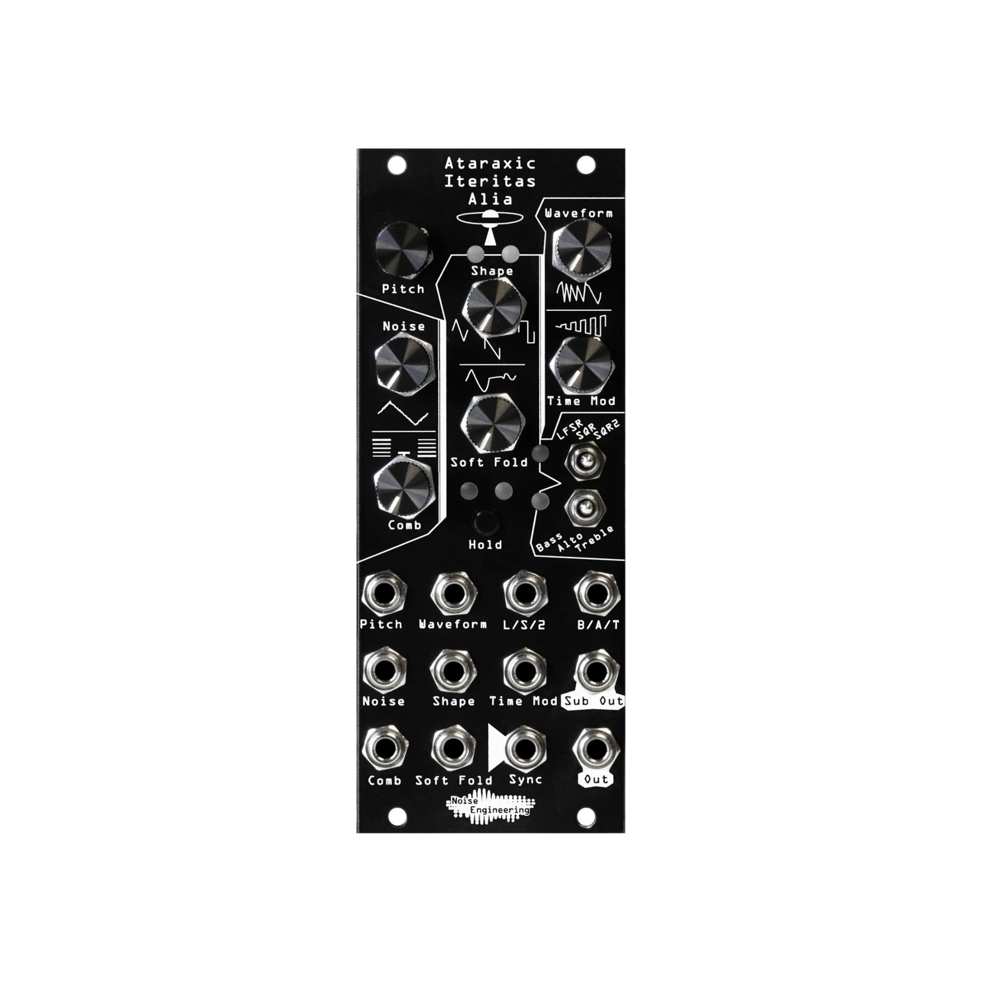 Ataraxic Iteritas Alia is a voltage-controlled oscillator based on the original Ataraxic Translatron but beefed up with a suboscillator and performable hold button. Sound starts with one of three bit tables shaped via variable interpolation that is then scrolled through, amplitude modulated, folded, and distorted by the CV-controllable front panel controls. Subby basses, metallic drones, unrelentingly digital timbres, and more are all to be had from the AIA. Plus we added a dedicated suboscillator out to make your patches even more extreme. Guaranteed to make the fax machine jealous.AIA is available on our 10HP Alia oscillator platform. Buy an Alia module and use the included USB cable to connect to the Noise Engineering Customer Portal and check out any other Alia firmware, free of charge, any time. More info can be found on the World of Alia page here. Hotswappable overlays are also available, so you can easily panel your module to match your firmware, no assembly required.