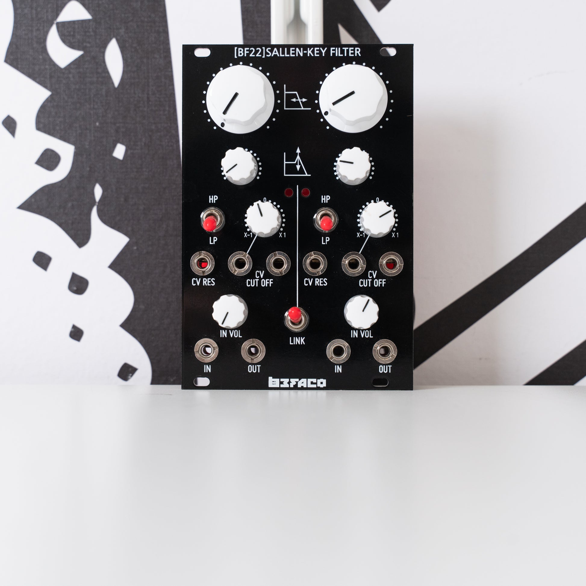 The BF-22 VCF is a dual Hi/Low-pass filter inspired by the Sallen-Key filter from the early MS-20.