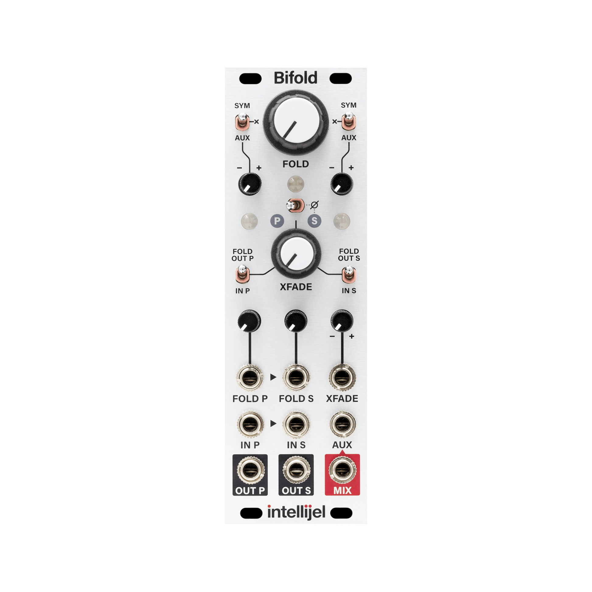 Bifold combines two unique wavefolders with a crossfader; One channel (the P channel) has a sonic characteristic inspired by the Buchla-style Parallel “deadband” folding circuit, while the other channel (the S channel) is more characteristic of a Serge-type Serial folding circuit. There are distinct differences to how they react to specific waveforms, modulation and even their overall frequency response. By linking both folders together with a voltage controlled crossfader we further expand the ability to blend these two different folders together to create new waveforms. But this just scratches the surface of possibilities. Ring modulation, blending, crossfading, complex noise generation, feedback modulation, cascaded folding and so much more are all possible thanks to the strategically placed routing switches, jack normals and attenuators and other control options. This is a module that invites much exploration and discovery and pairs well with almost any kind of modulation and sound source.