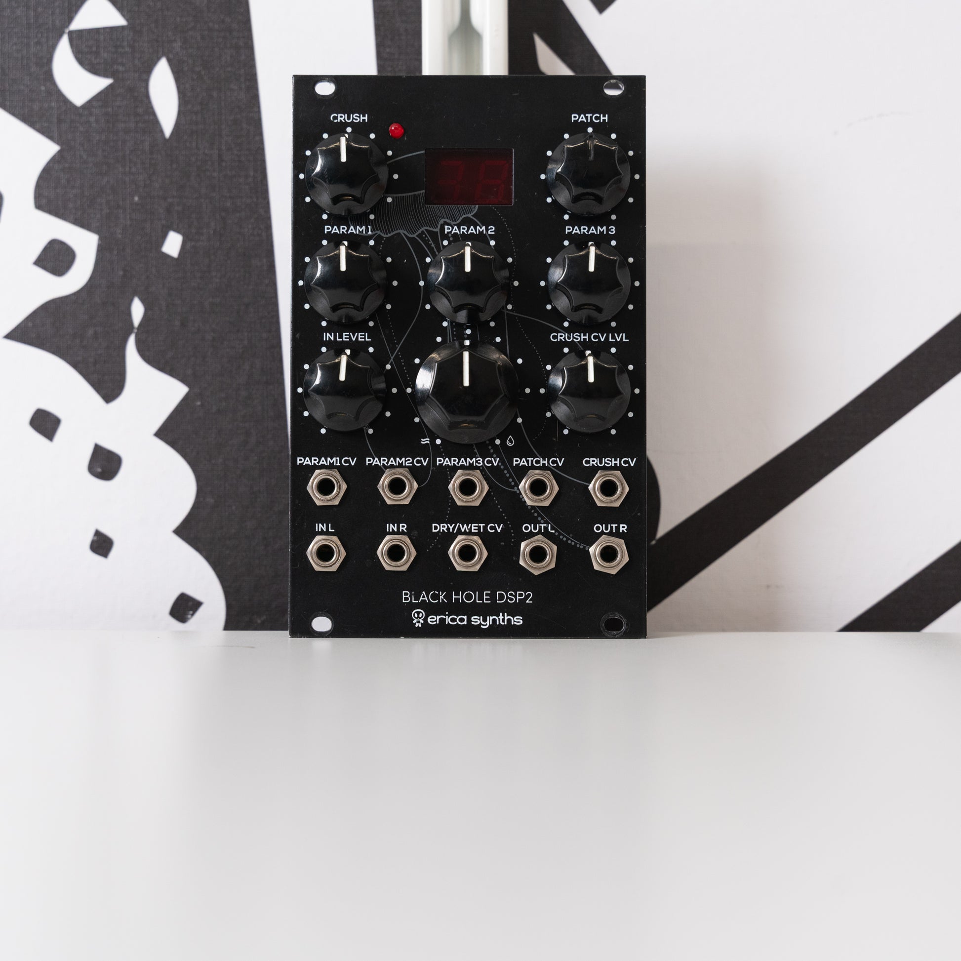 Erica Synths Black Hole DSP 2, an updated version of Black Hole DSP features 24 custom effects, designed in close co-operation of Erica Synths team rider KODEK and creator of SpinCAD software Gary Worsham. Each effect has 3 manually and CV controllable parameters, manual and CV control over sampling frequency for spanning from 48kHz to really Lo-Fi crunchy sound and full analogue dry/wet control. All effect parameter settings can be saved to the memory and instantly recalled with the effect, which makes Black Hole DSP II ideal for live performances.