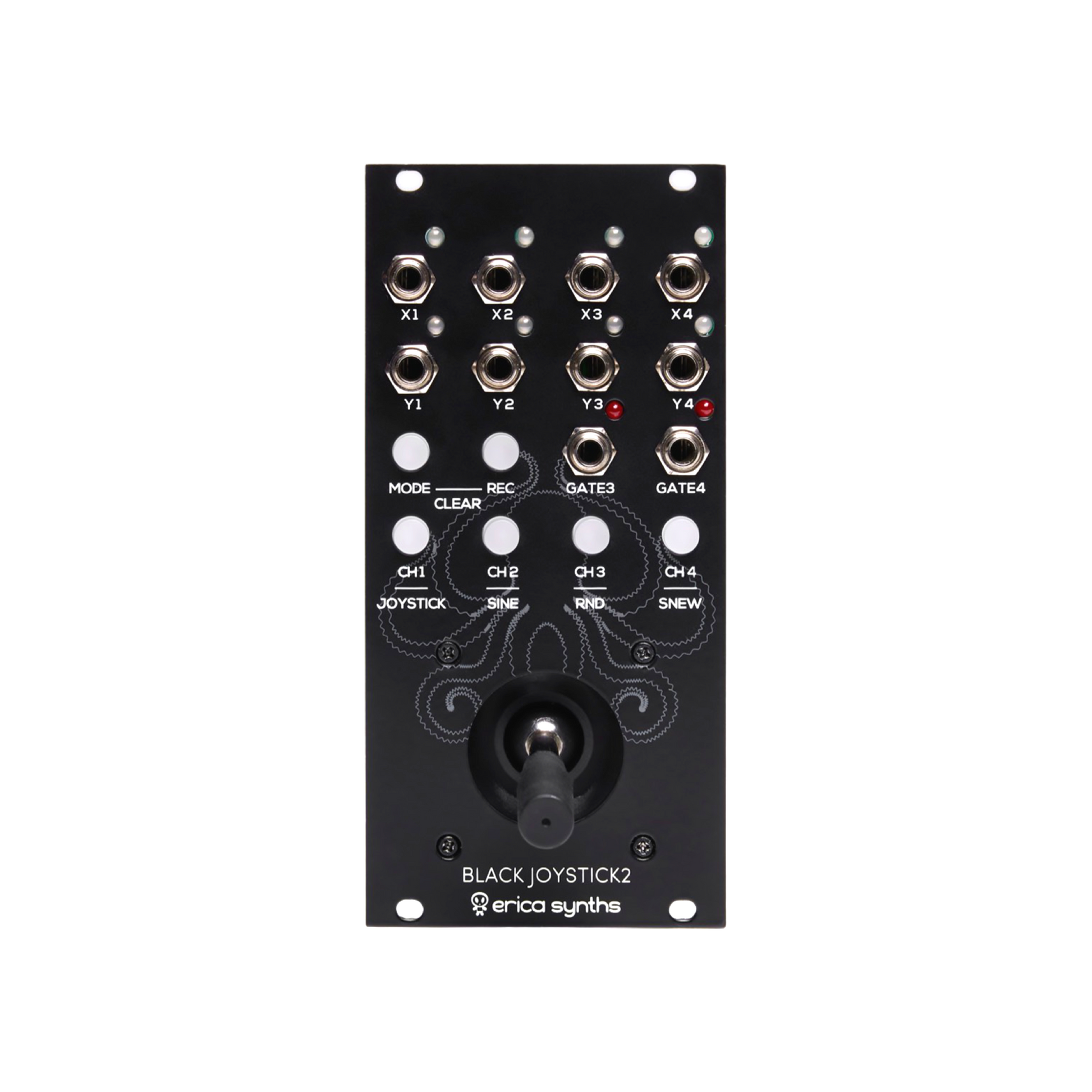Erica Synths Black Joystick2 is 4 channel (2 axis on each channel) multi functional CV and sound source – joystick, movement recorder, distinct LFO and drone/noise oscillator. It provides great interaction with the modular system and allows to develop unconventional modulation patterns easily.