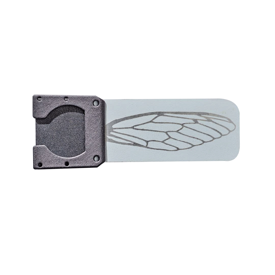 Grey Wing Bridge is a mechanical oscillator driven by the Actuator that vibrates on the Soundboard. At the tip, where it rests on the Soundboard, different materials have been curated for their unique sonic qualities, and to match the kinetic behaviours of each bridge shape. This spring-steel rectangular Bridge is our standard dimension bridge optimized for the Actuator. The tip is made of soft neoprene foam, which results in a mellow, balanced acoustic effect on the soundboards.