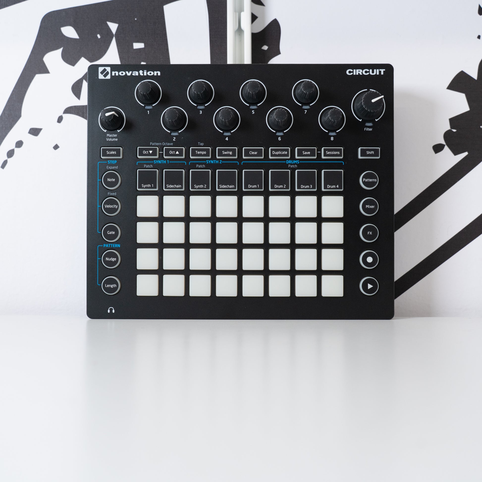 Novation's Circuit is a standalone groovebox combining two Novation polysynths and a four-part drum machine with an intuitive grid-based sequencer that will have you making electronic music in minutes. Compact and battery powered with a powerful built-in speaker, Circuit can be used to make music entirely on its own. In the studio it will work alongside your standalone synth gear and run in sync with your music software too. Circuit is all you need to inspire, create and play new tunes.