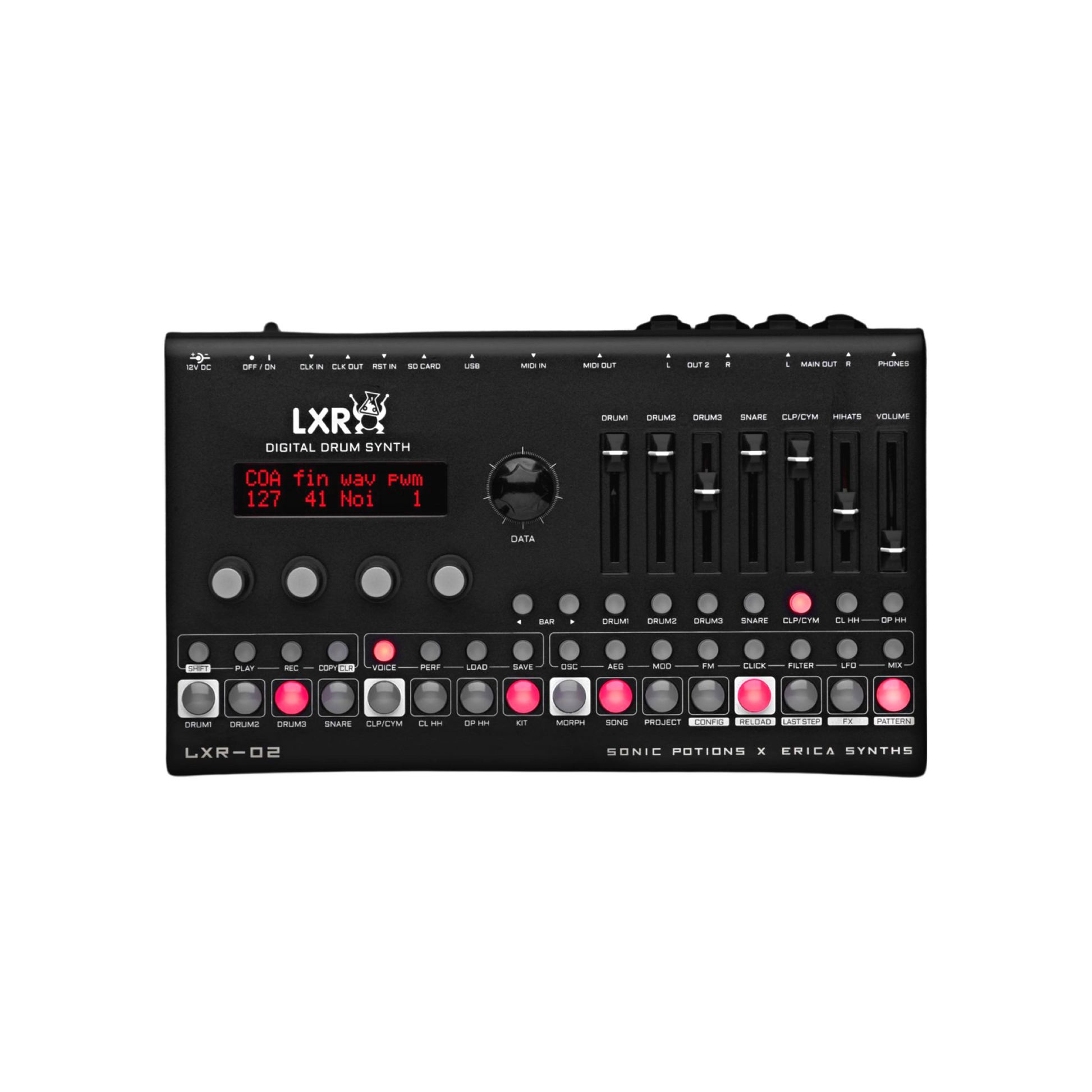 Two companies - Sonic Potions and Erica Synths joined efforts to develop a drum machine that would stand apart from the masses and the LXR-02 was born. The LXR is a full-fledged digital drum machine with an integrated sequencer. Its sound engine provides 6 different instruments, each with over 30 parameters to tweak, producing sounds from classic analog emulations to crunchy digital mayhem, thus offering some of the most extensive sound design capabilities found on a drum synthesizer. Its compact, durable design and clear user interface make it ideal for live gigs.
