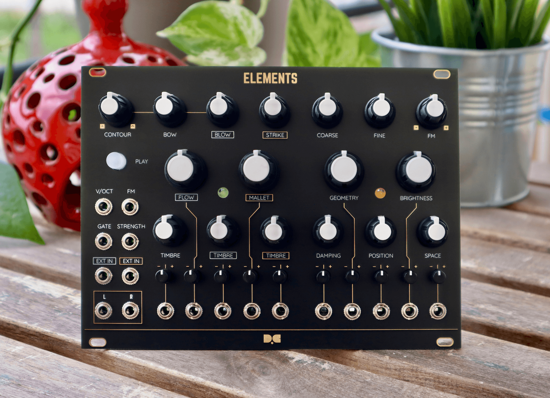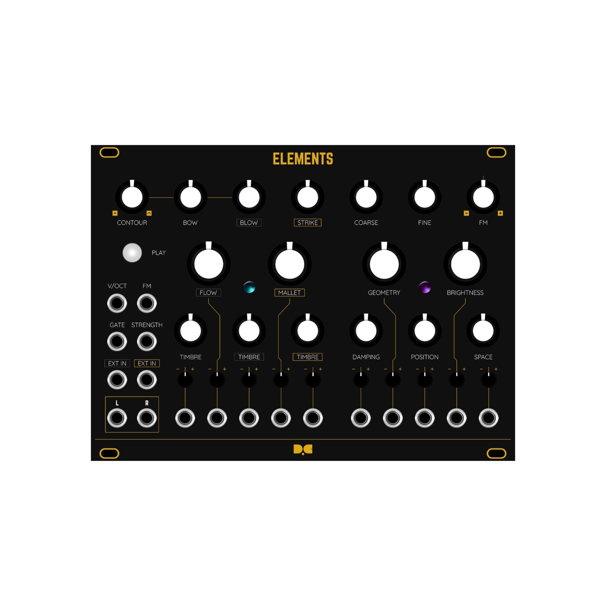 This is an alternative black & gold panel for the Mutable Instruments Elements modal synthesizer.
