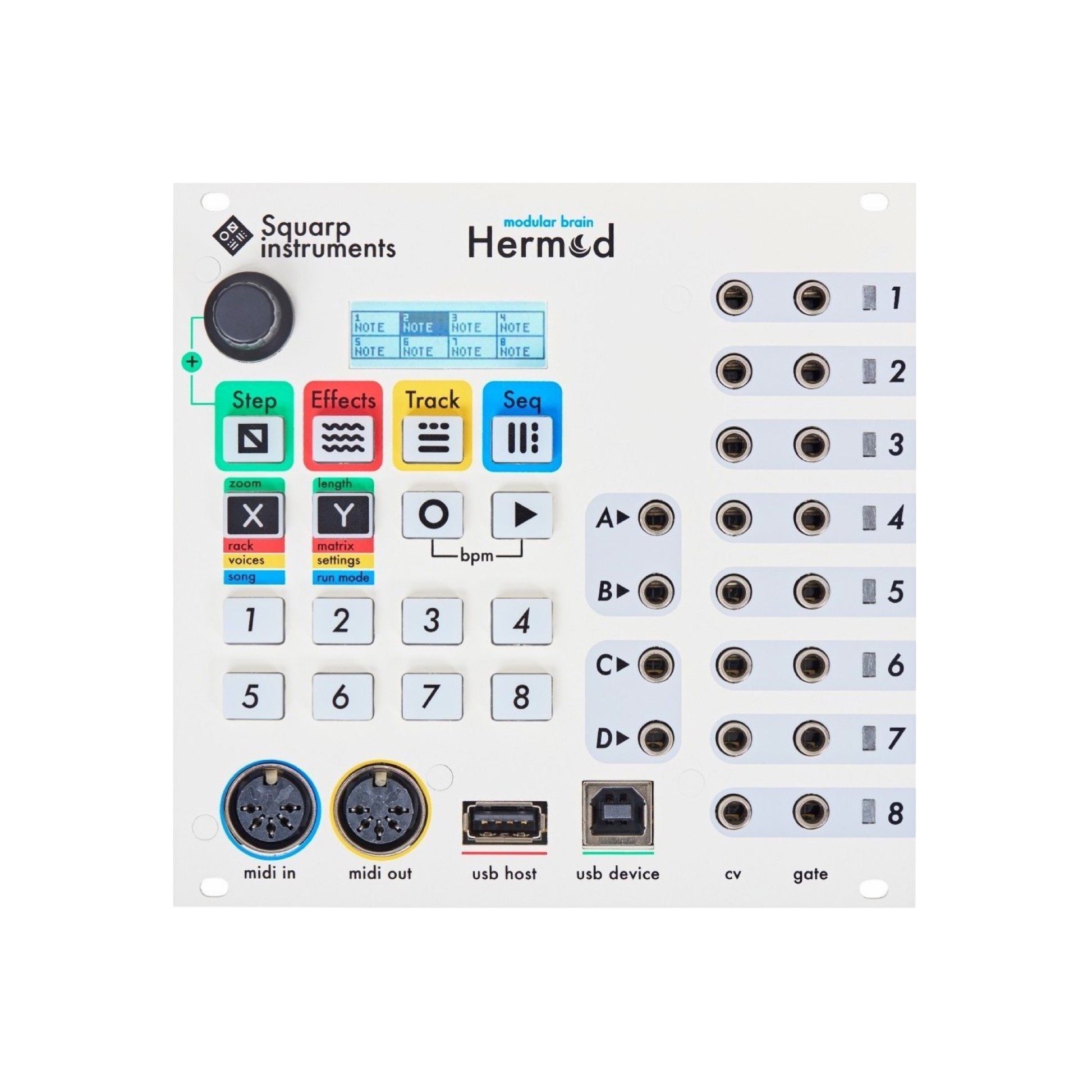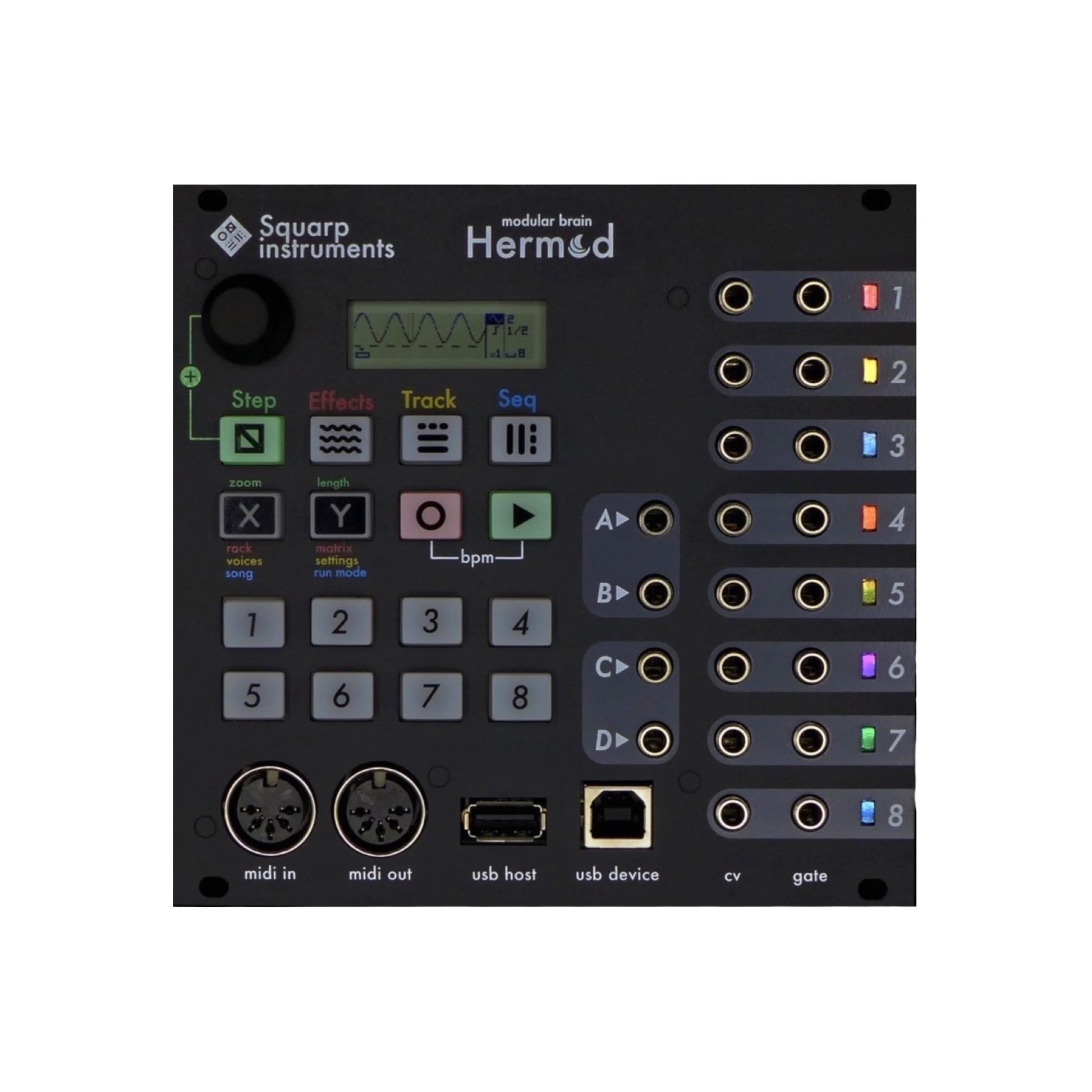 Hermod brings together an advanced step sequencer, a CV looper, a real-time effect processor, LFO generators and a complete bi-directional MIDI-USB-CV input/output interface.
