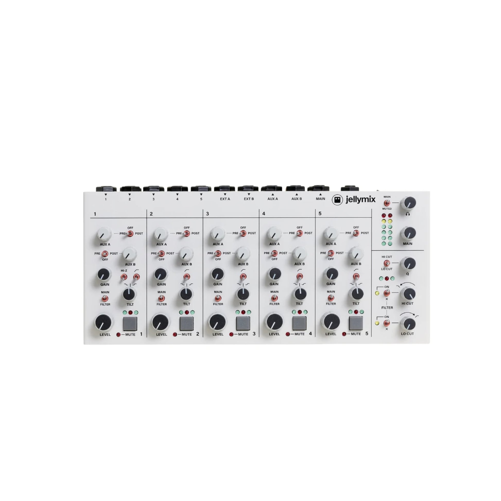 Jellymix combines flexible routing, tactile control, and musical analog filtering in a compact format built for real-time performance. Whether shaping a live set or building a hybrid studio workflow, it provides hands-on mixing with character and reliability.