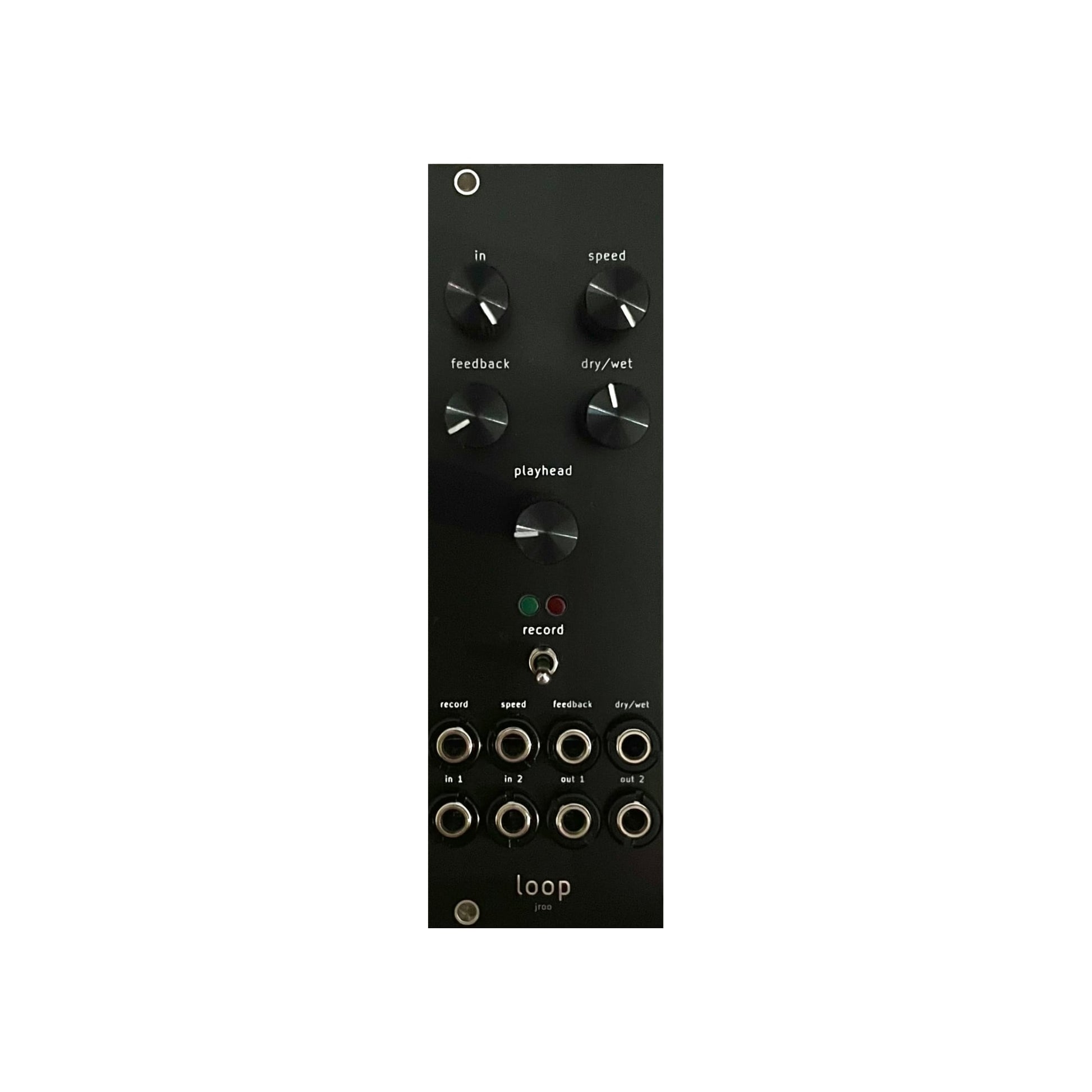 loop is modelled after tape loop systems where audio is recorded to and played back from a tape that’s continually looping. Several interesting effects can be accomplished in this system when the position of the play head, tape speed, direction, and audio and feedback levels are modified. loop gives you manual and CV control over each.