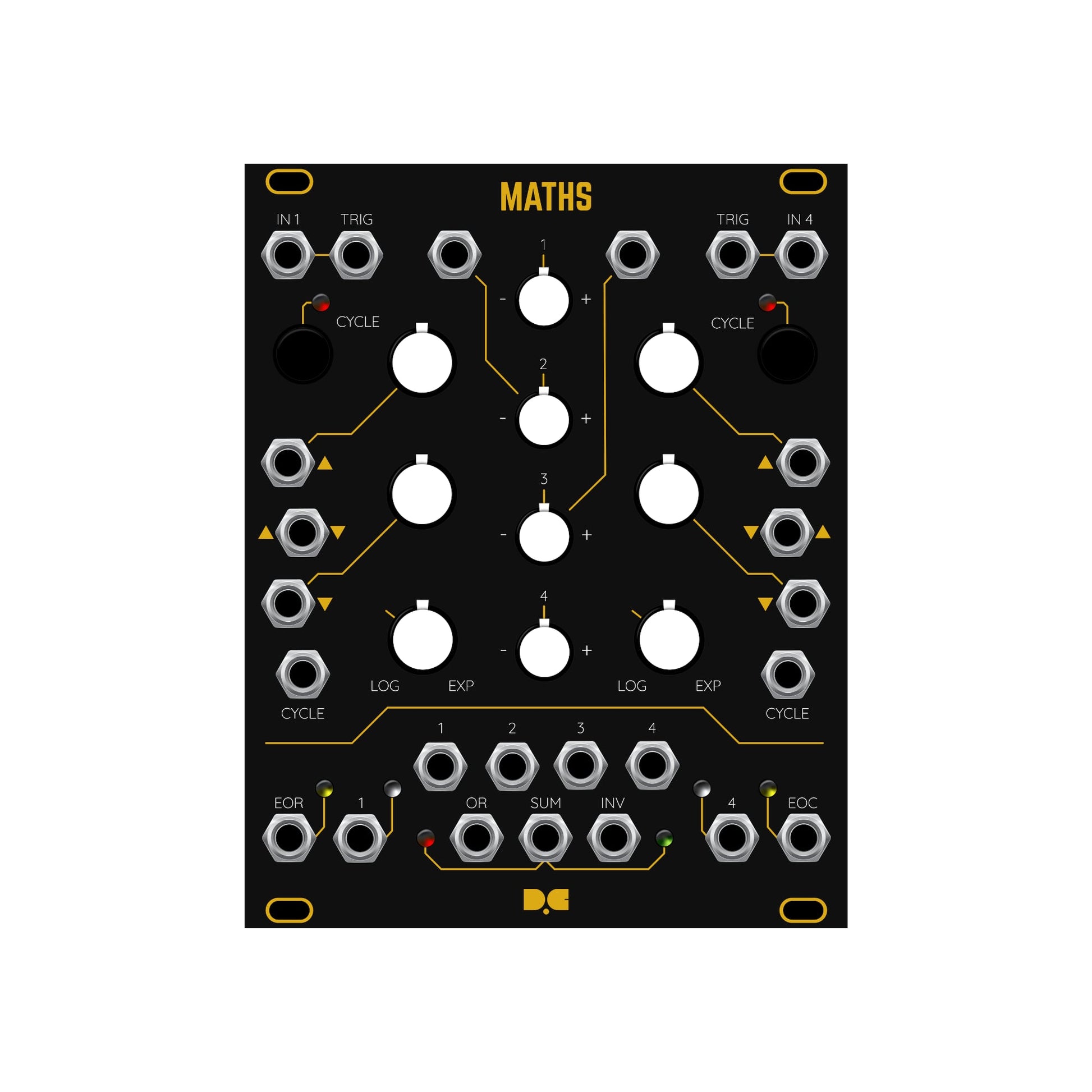 This is a black and gold panel designed for the legendary Make Noise Maths module. It has a very clean look, straight lines and some basic geometrical shapes.