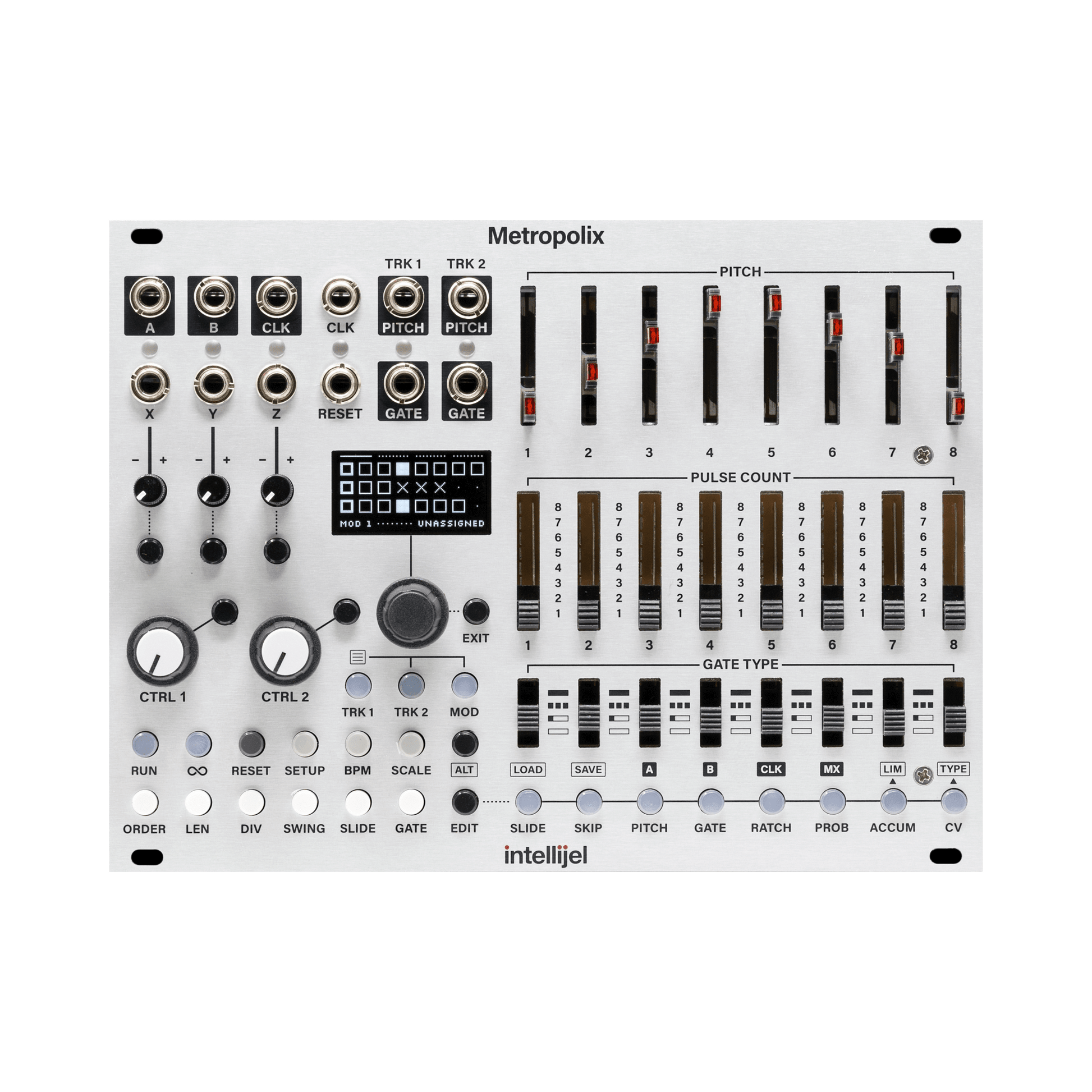 The Intellijel Metropolix is a unique and powerful multitrack Eurorack musical sequencer. With an abundance of hands-on, tactile controls and a wealth of modulation possibilities (both internal and external) you can quickly and easily create infectiously musical sequences that are never boring. Even the simplest melody can be brought to life with seemingly endless options to create variations or real-time manipulations.