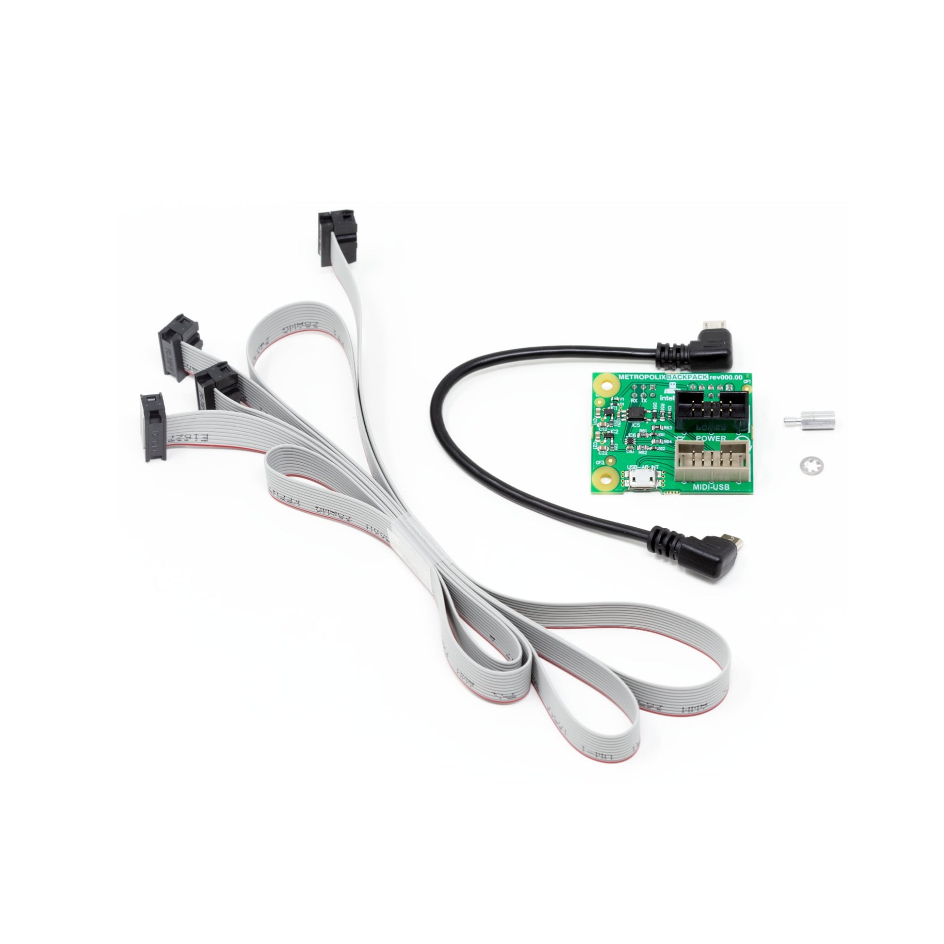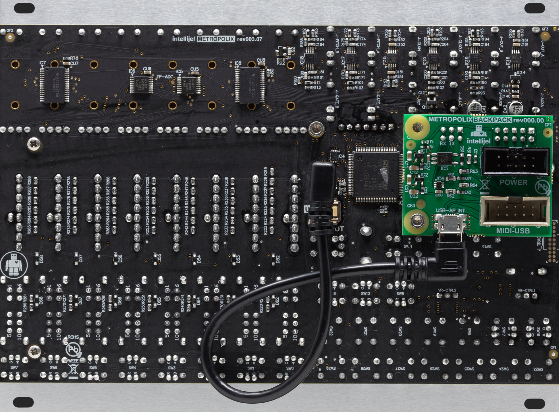 With the Metropolix backpack installed, you can connect directly to the MIDI DIN and USB jacks on the following Intellijel cases (via included 10pin ribbon cable):