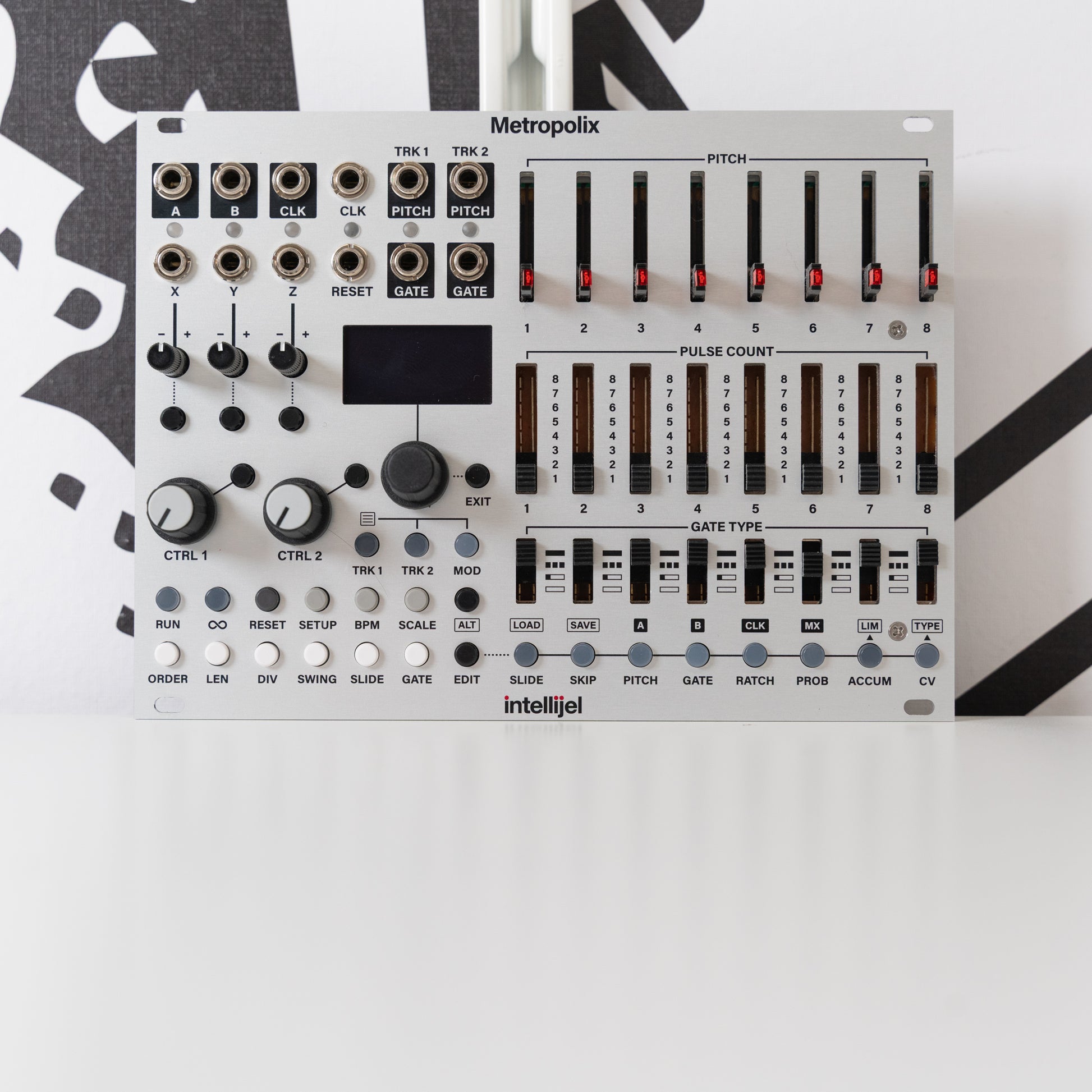 The Intellijel Metropolix is a unique and powerful multitrack Eurorack musical sequencer. With an abundance of hands-on, tactile controls and a wealth of modulation possibilities (both internal and external) you can quickly and easily create infectiously musical sequences that are never boring. Even the simplest melody can be brought to life with seemingly endless options to create variations or real-time manipulations.