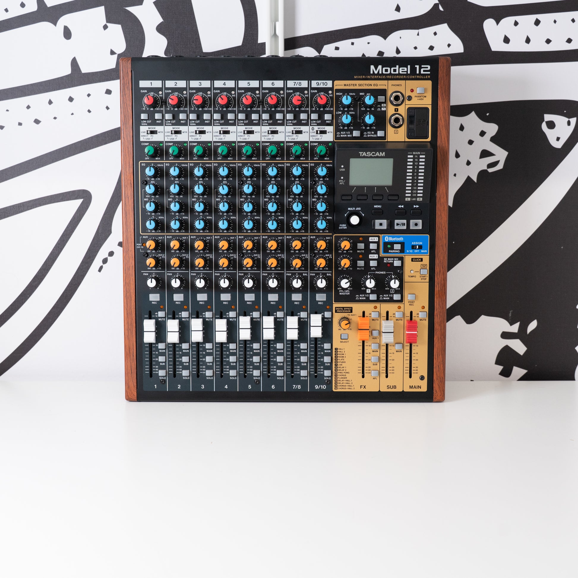 The TASCAM Model 12 is a powerful production workstation and DAW control surface for music producers, content creators, live performers, and podcasters. At its core, Model 12 is a high-quality compact mixer, complete with premium Ultra HDDA (High Definition Discrete Architecture) microphone preamps, compressor and 3-band EQ on each channel, 3-band mastering EQ, and console-like routing capabilities. Beyond your DAW, Model 12 is also a standalone recorder that's ready to capture studio-quality multitrack audio directly to SD card. Connect to your computer and Model 12 becomes a powerful audio interface with comprehensive DAW control capabilities, giving you a tactile, hands-on mixing experience while you leave your mouse aside. Live performers will appreciate Model 12's built-in effects and routing flexibility, while podcasters will find crucial functions like mix-minus and a dedicated smartphone input. Whether you use it as a USB audio interface, DAW controller, standalone recorder, or as a standard mixing board, the TASCAM Model 12 is equipped to support your creative process.