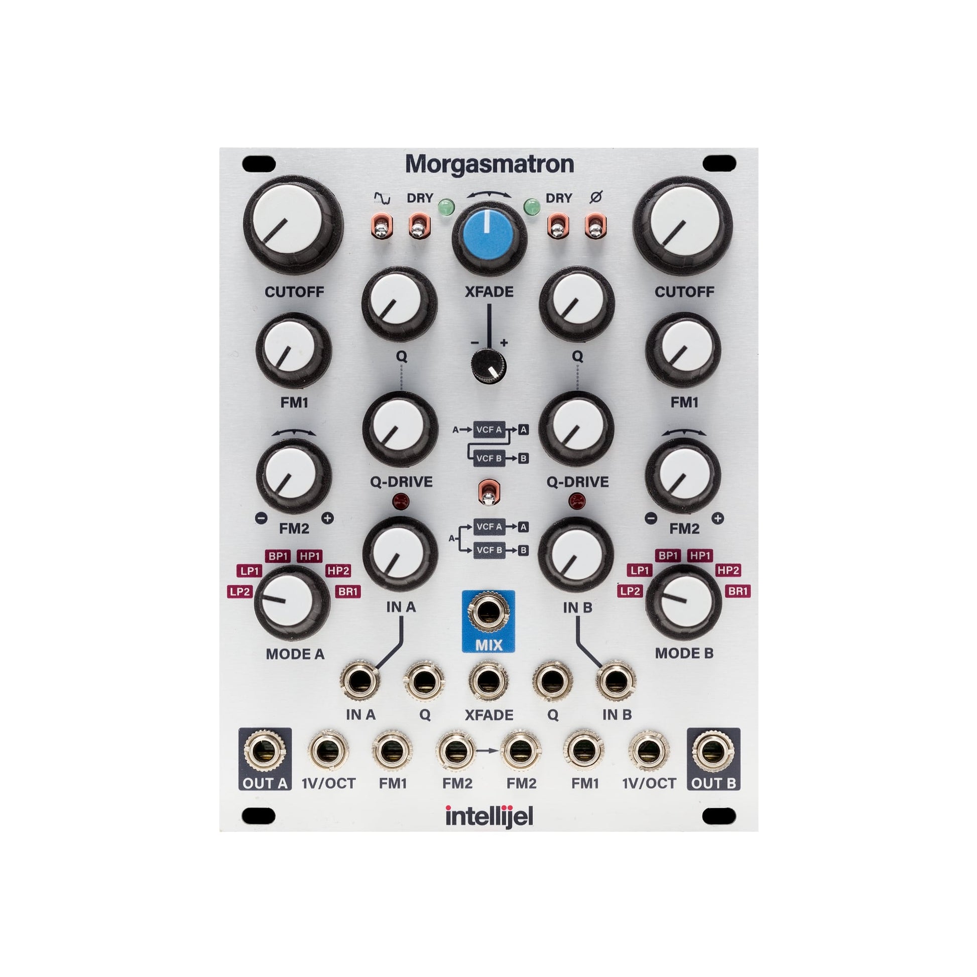 This is the third generation of Intellijel’s much loved Korgasmatron filter designed in collaboration with David G. Dixon. For obvious reasons, we considered naming it the Korgasmatron III. But once we experienced the purity and range of its finely re-tuned filters; the warmth of its soft-clipping; the beefiness of its Q-DRIVE; the aggressive howl of its all new overdrive circuit; the additional XFADE options; and its clangorous new ring modulation capabilities, we knew it was something much more than a Korgasmatron III. It was a MORgasmatron!