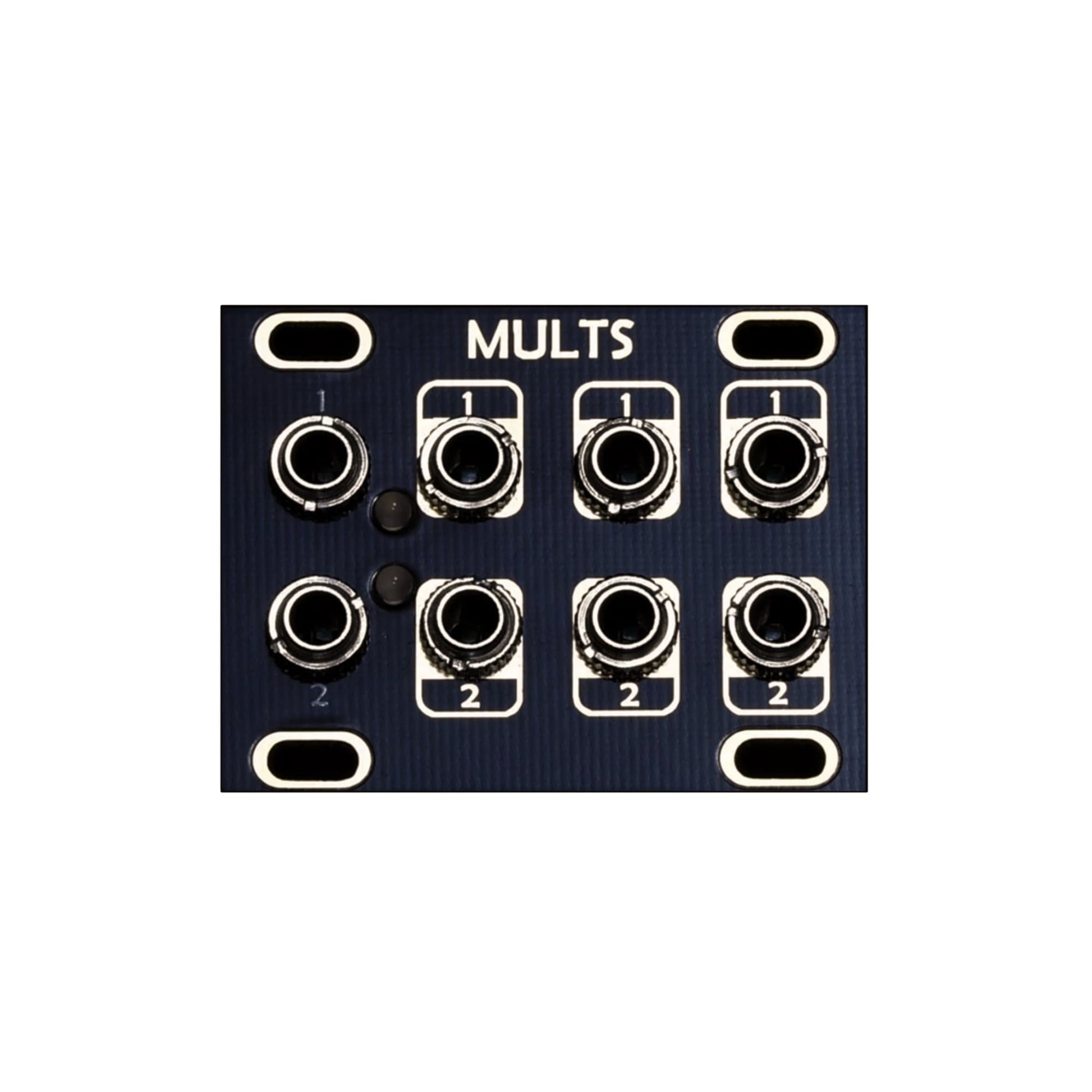 This is a buffered/active mult with LED indicator. You get two channels of 1 to 3 multiples within a compact 1U module. The output of channel 1 is normalled to channel 2 so it can also be treated as a 1 to 6 multiple as well.