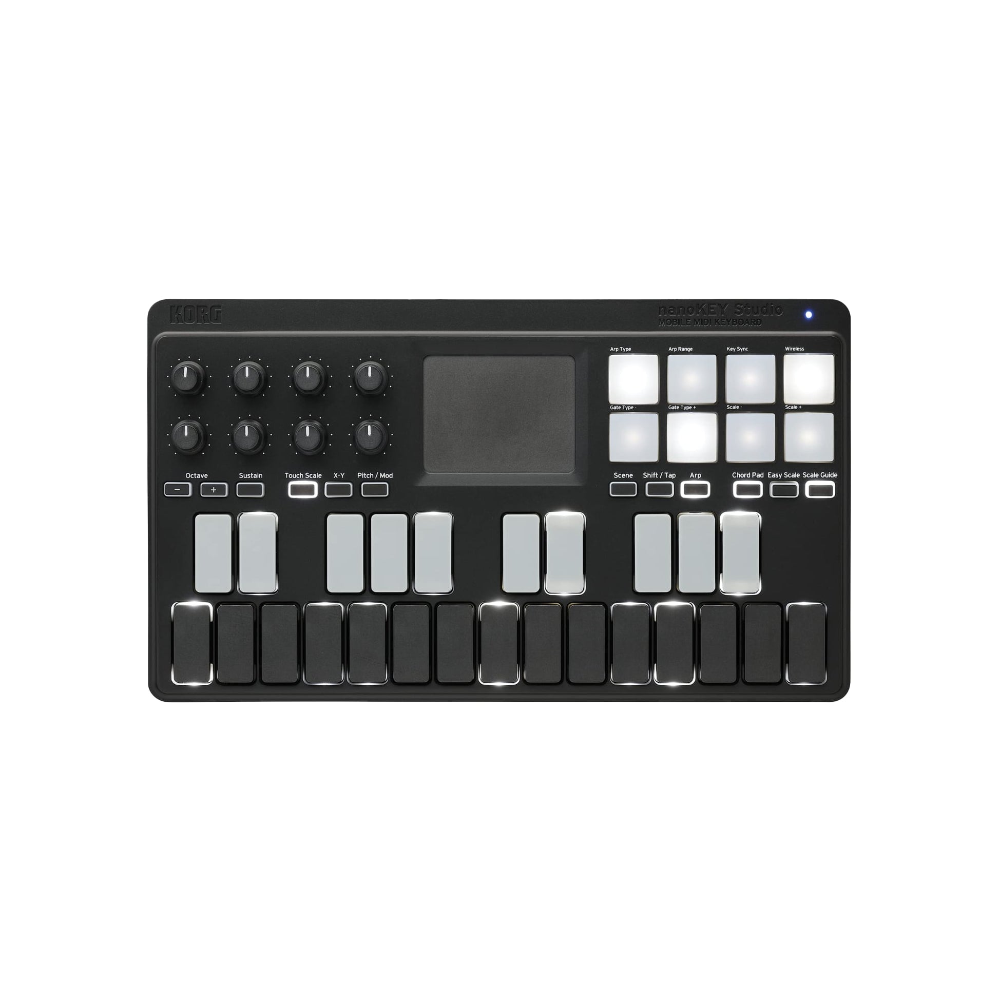 The nanoKEY Studio provides a keyboard, knobs, trigger pads, and touch pad that lets you instantly convert your inspiration into sound. It is battery operated and can connect wirelessly to iPhone/iPad or Mac/Windows. It's a compact, mobile MIDI keyboard that is easy to travel with, allowing ease of use anytime, anywhere.