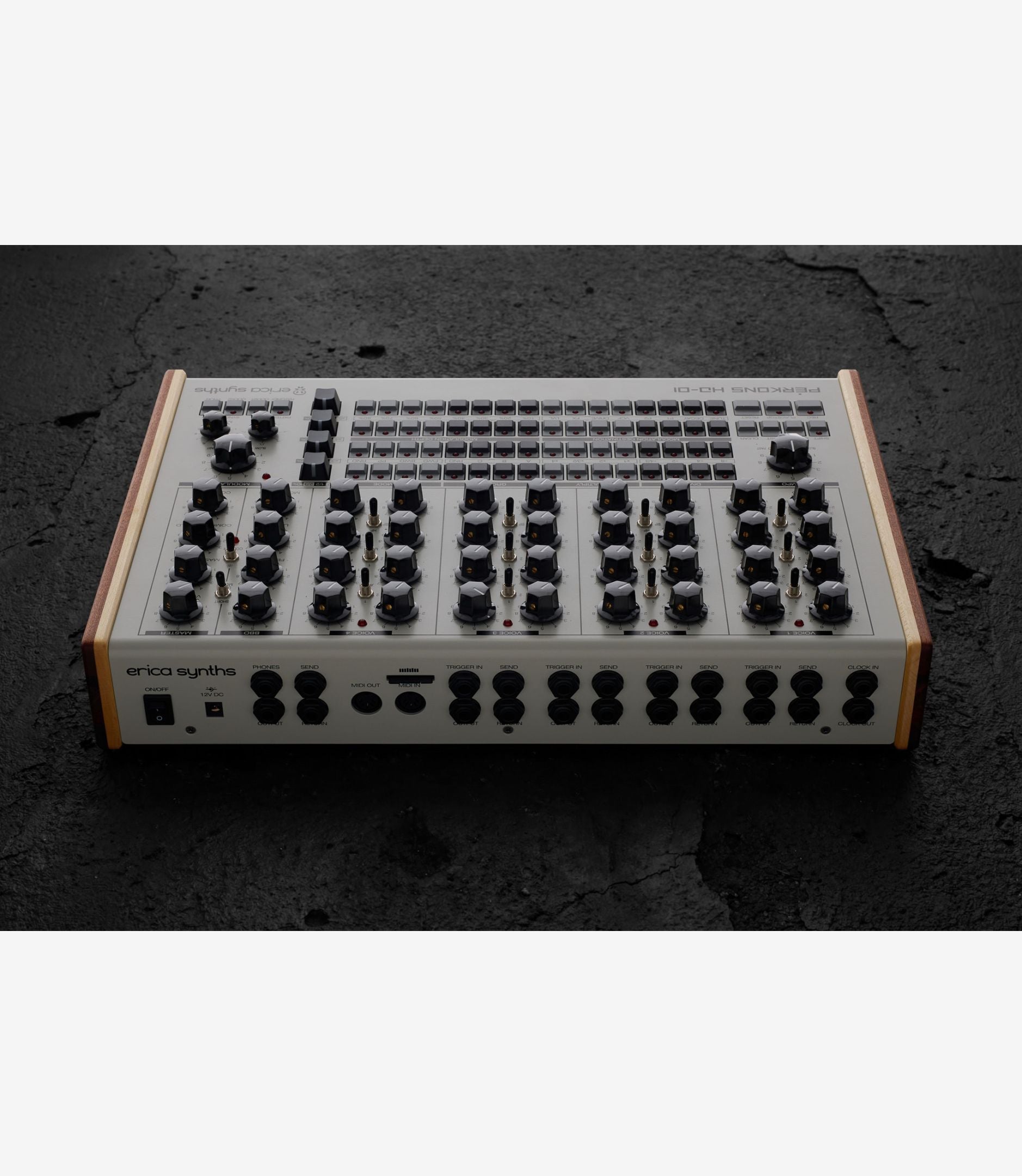 PĒRKONS HD-01 is a unique live performance and sound design instrument that tears down the borders between drum machine, synthesizer, and drone instrument.