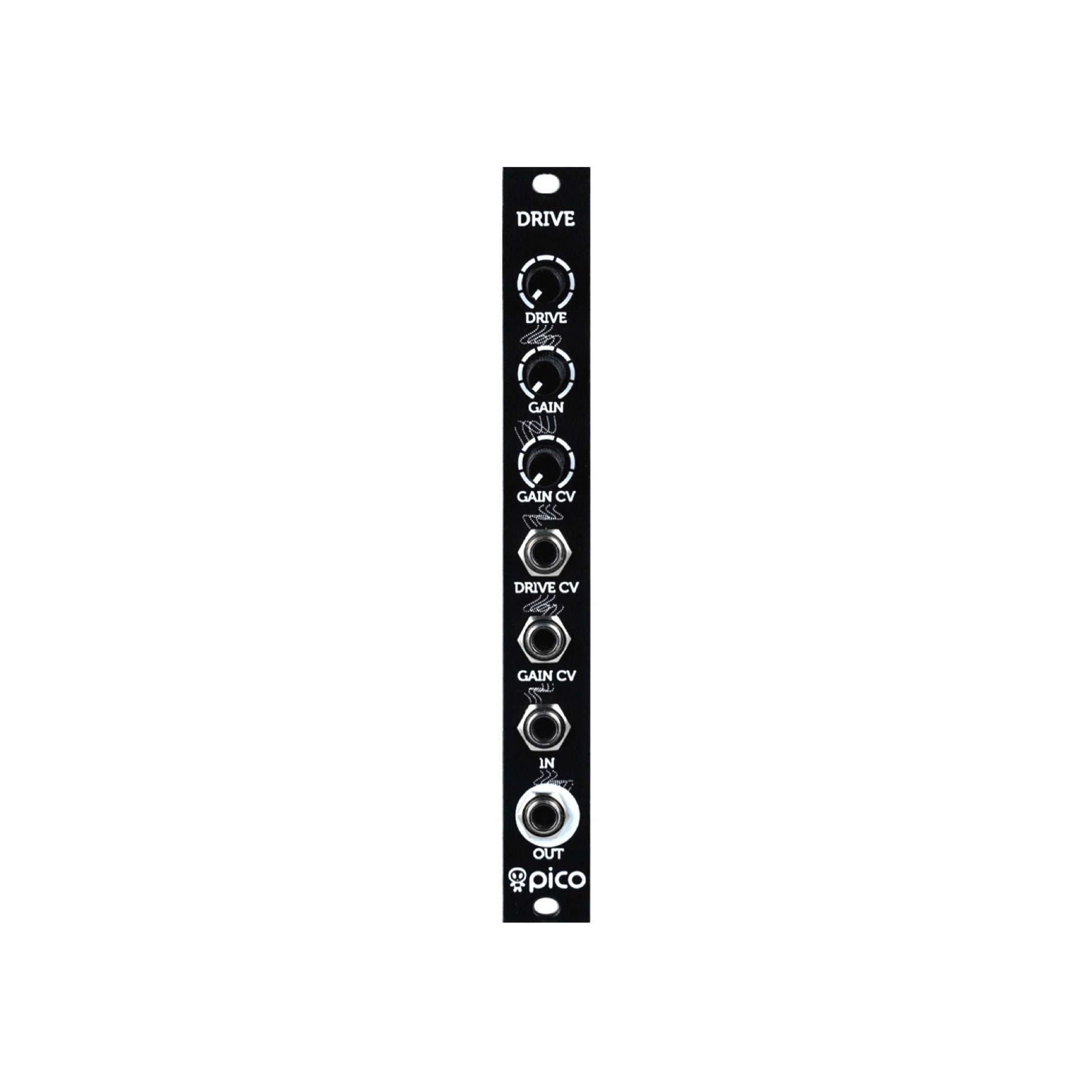 Want some distorted drums or thicken up the final mix but you are short in rack space? Pico Drive is the answer! Pico Drive is combined wavefolder overdrive module that features manually adjustable Gain and Drive level, CV control over Gain and Drive adds more expression, while built in limiter prevents output signal to run into undesired clipping.