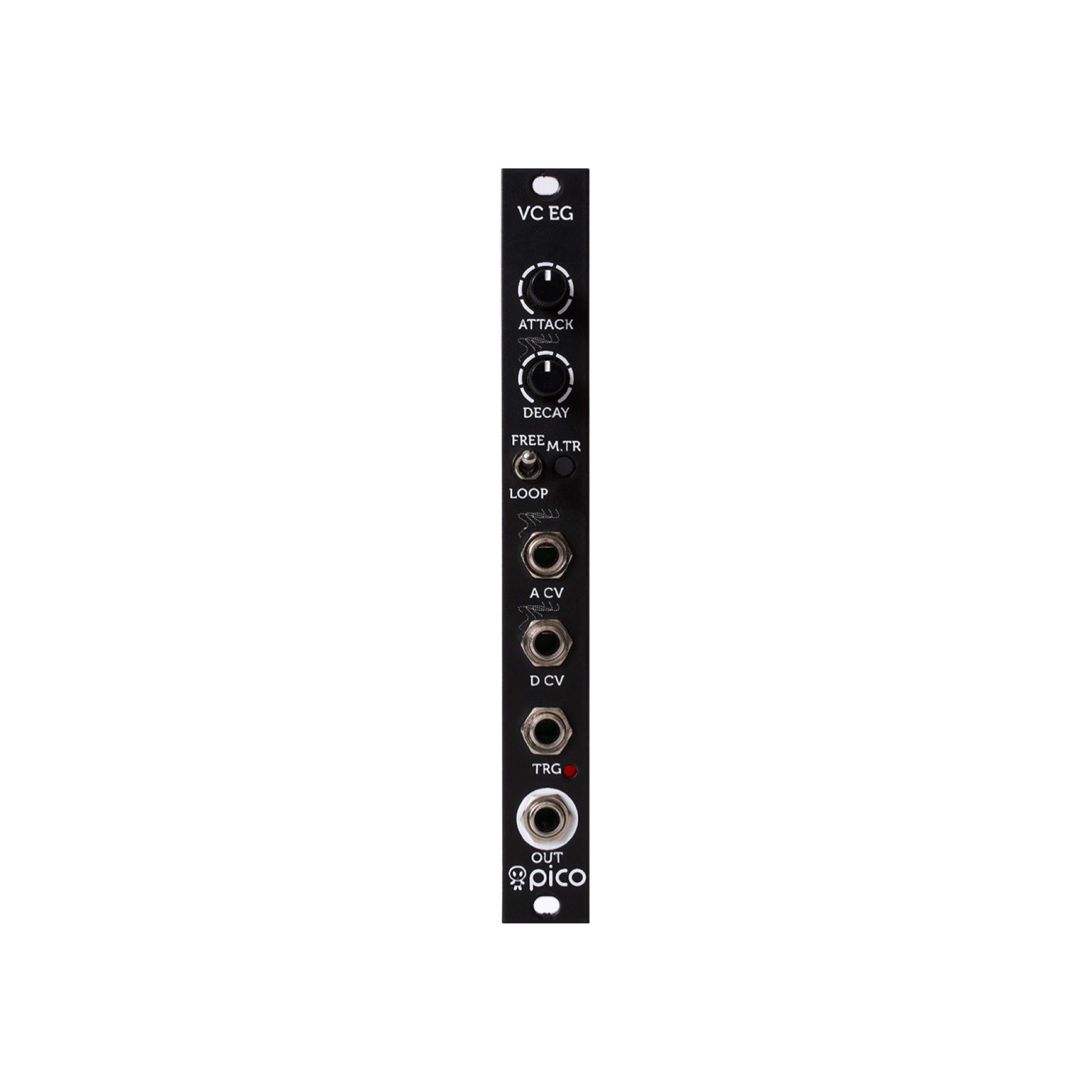 Erica Pico VC EG is versatile looping AD/ASR envelope generator with voltage control over attack and decay times. It has automatic Trigger/Gate detection, as well as “drone mode” – at full CW setting of the Decay knob, the envelope is full open. In the LOOP mode you can re-trigger envelopes for even more interesting modulations.