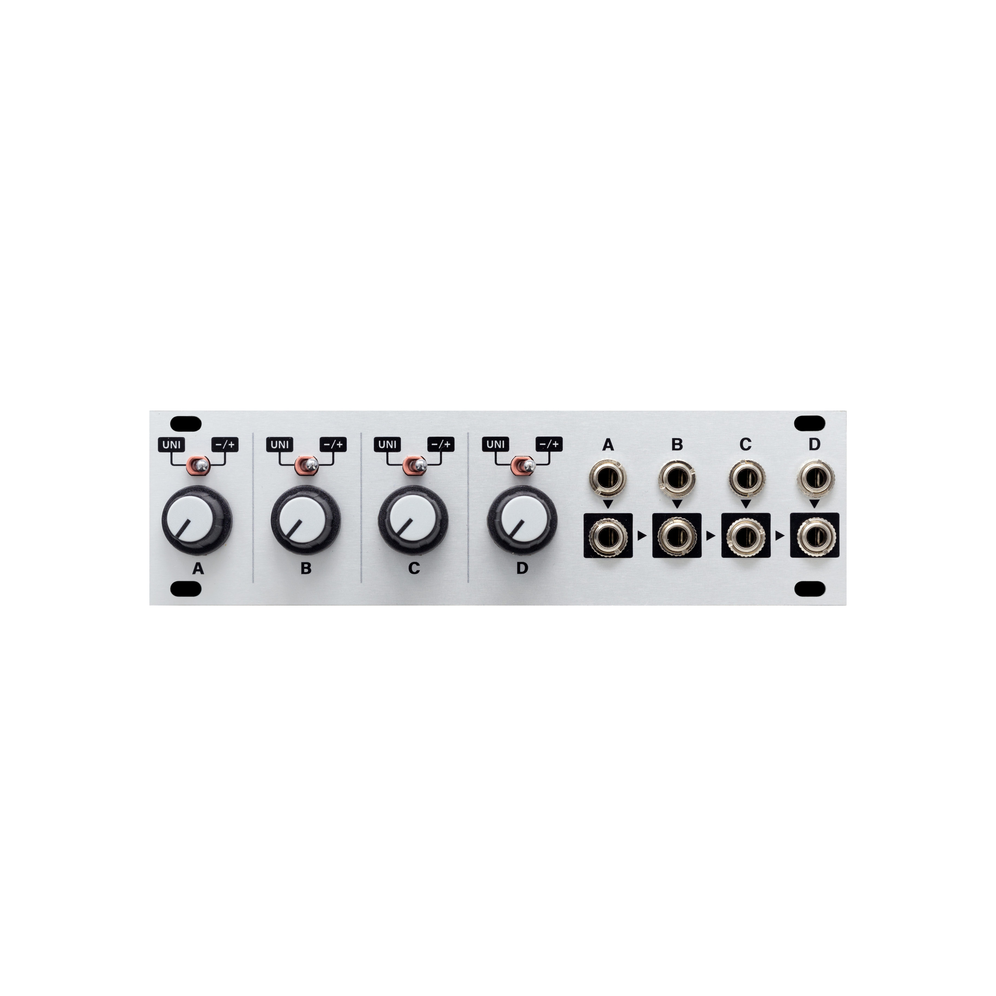 Sometimes you just need a quick audio mixer; a voltage offset; a CV mixer; an attenuator; an attenuverter; or just a voltage. Mix and match the four controls to your needs.