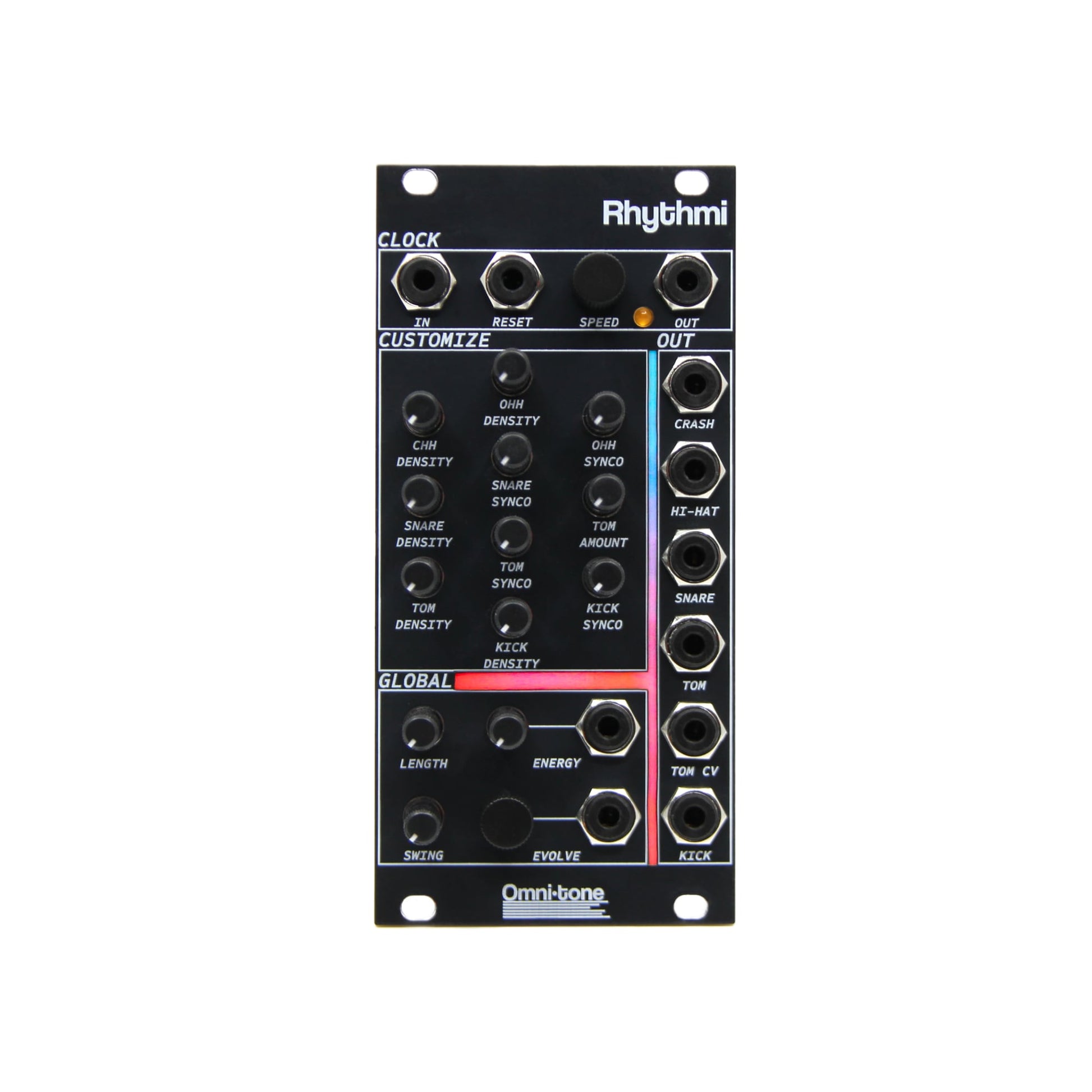 Rhythmi is a Eurorack drum sequencer that allows you to dial in your groove, and explore it by evolving the pattern and modulating the energy. It allows for rhythmic inspiration and creativity without the burden of step programming. The evolve parameter enables smooth transitions between related rhythms through the use of branches. New branches can be generated at the push of a button, loading up a whole new branch of related rhythms to explore. The Evolve parameter is the heart of Rhythmi, its inspiration, and defining feature. Allowing rhythms to shift, transform, and melt into one another.