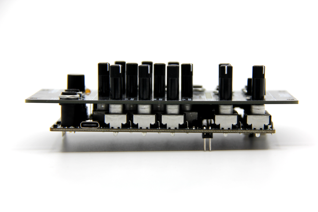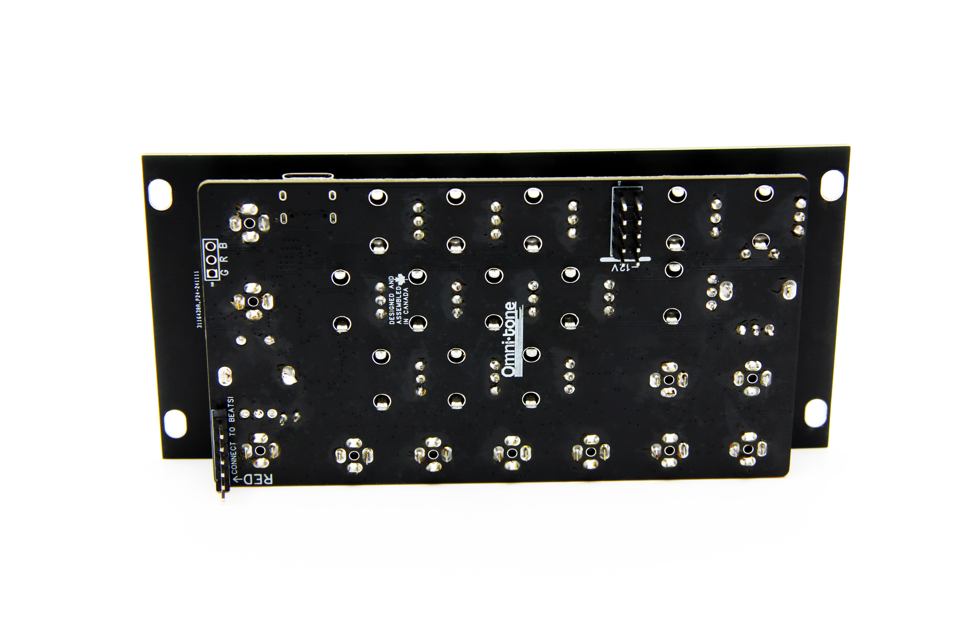 The Clock Section provides internal or external clocking with division or multiplication. The Customize Section shapes individual drum elements through density and syncopation. The Global Section introduces macro-level control over the rhythm via the Energy, Evolve, Length and Swing parameters, dynamically shaping fills and variations. Rhythmi has a jumper cable connector on the back to pair up seamlessly with Beatsi, the drum voice it was designed alongside with.