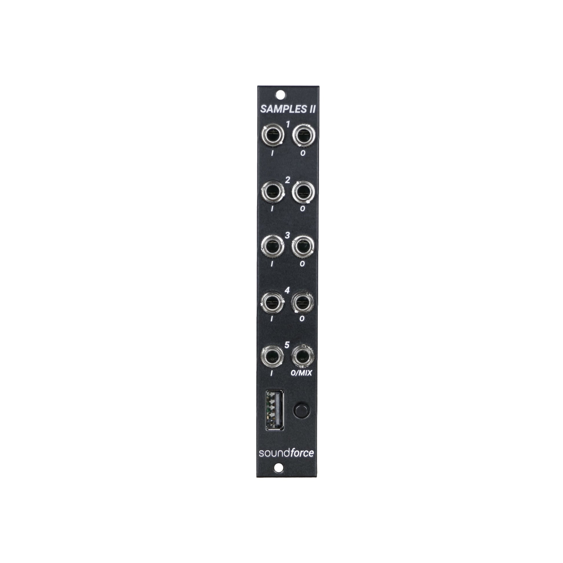 Samples II is a Eurorack 5-channels USB Sample Player. It plays back and streams wave audio files directly from a USB memory stick giving users the flexibility to change samples and offering them virtually infinite memory space. Samples II is able to play back wave files of more then 1 hour long.