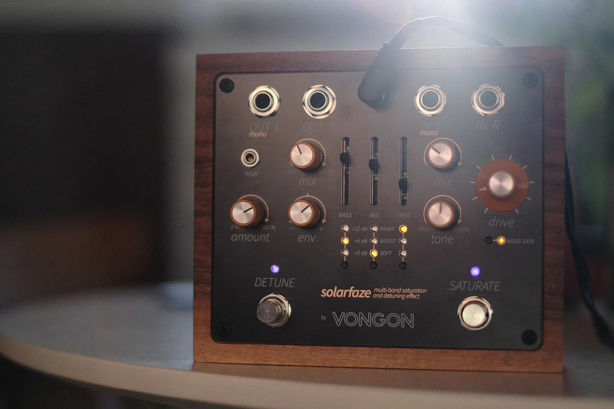 SOLARFAZE is a stereo audio processor that carries your sound across a sunlit landscape of phase and tone. it combines multi-band saturation with an envelope-controlled detune chorus, creating warmth, shimmer, and stereo dimension