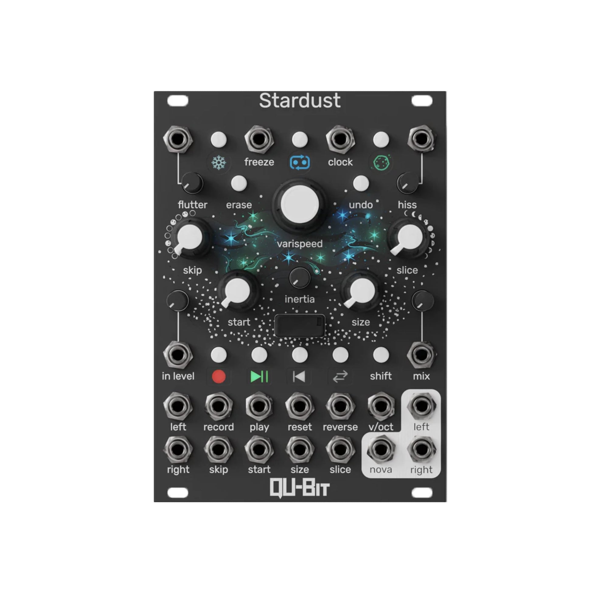 The foundation of Stardust is a stereo looper with all the essential controls to record and manipulate sound, while supporting click-less looping transitions, an ultra-low noise floor, and high-fidelity audio hardware. However, getting the perfect loop is only half of the equation - Stardust also focuses on the texture and vibe of your recordings. Dial in nostalgic warmth with wow & flutter / tape hiss controls, or take Stardust to new horizons with out-of-this-world DSP effects. And, much like the tape-machines of yore, Stardust can splice and rearrange its loops at the twist of a knob.