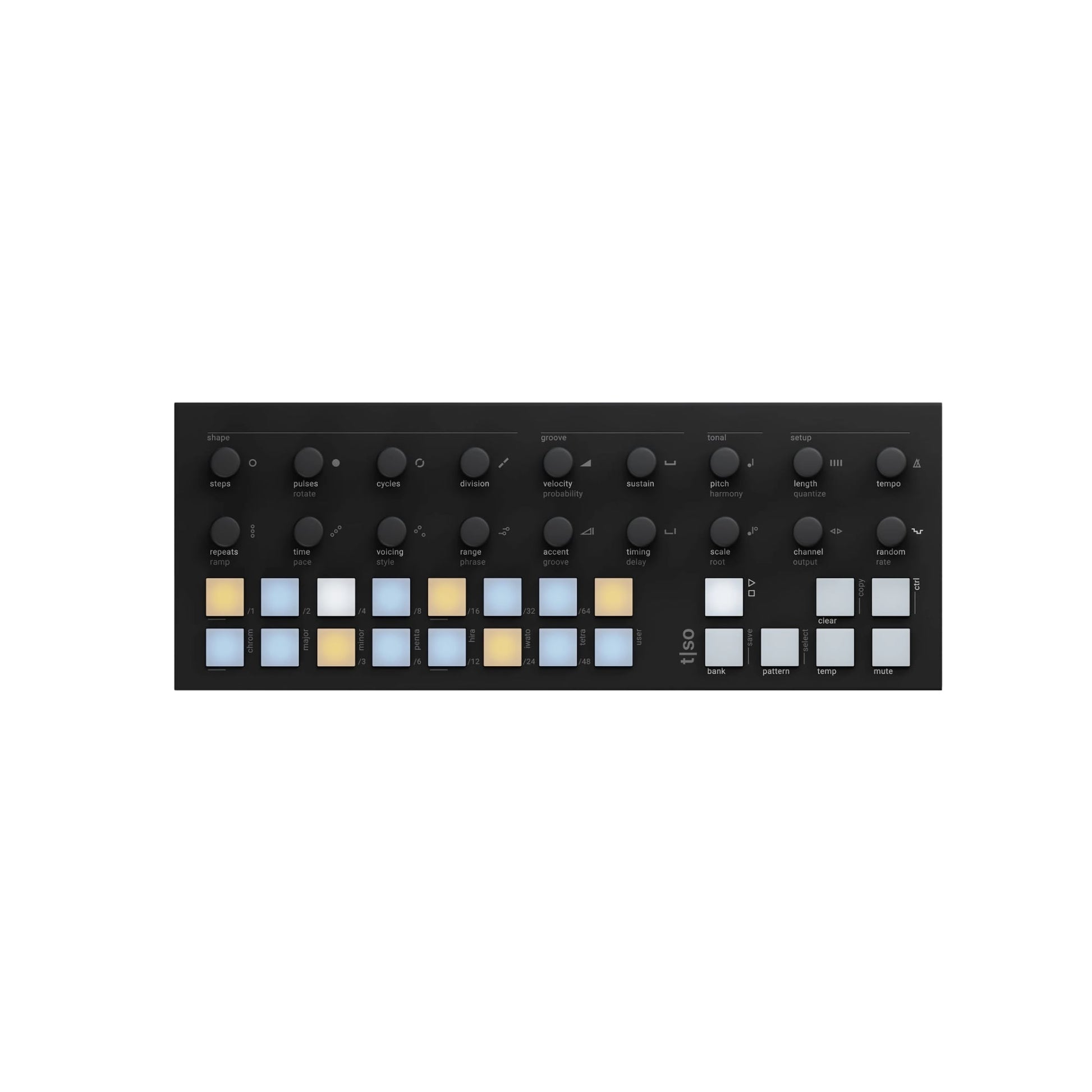 The T1 offers a generative workflow with focus on immediacy and playful exploration. Whether on stage or in the studio, the T1 will inspire you with fresh ideas and help you push the boundaries of your music. In short, this is a fundamental rethinking of the sequencer as a modern, fun and inspiring instrument.