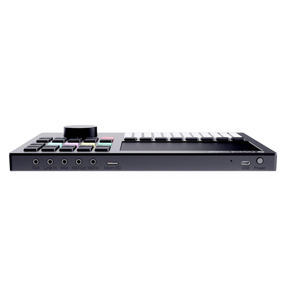 A retro form factor updated with forward looking functionality and designed as an easy to use compact standalone workstation. Made for creatives who break patterns on a daily basis. Designed to help artists forge unique avenues of sonic construction. Introducing the first hardware tracker in the music world.