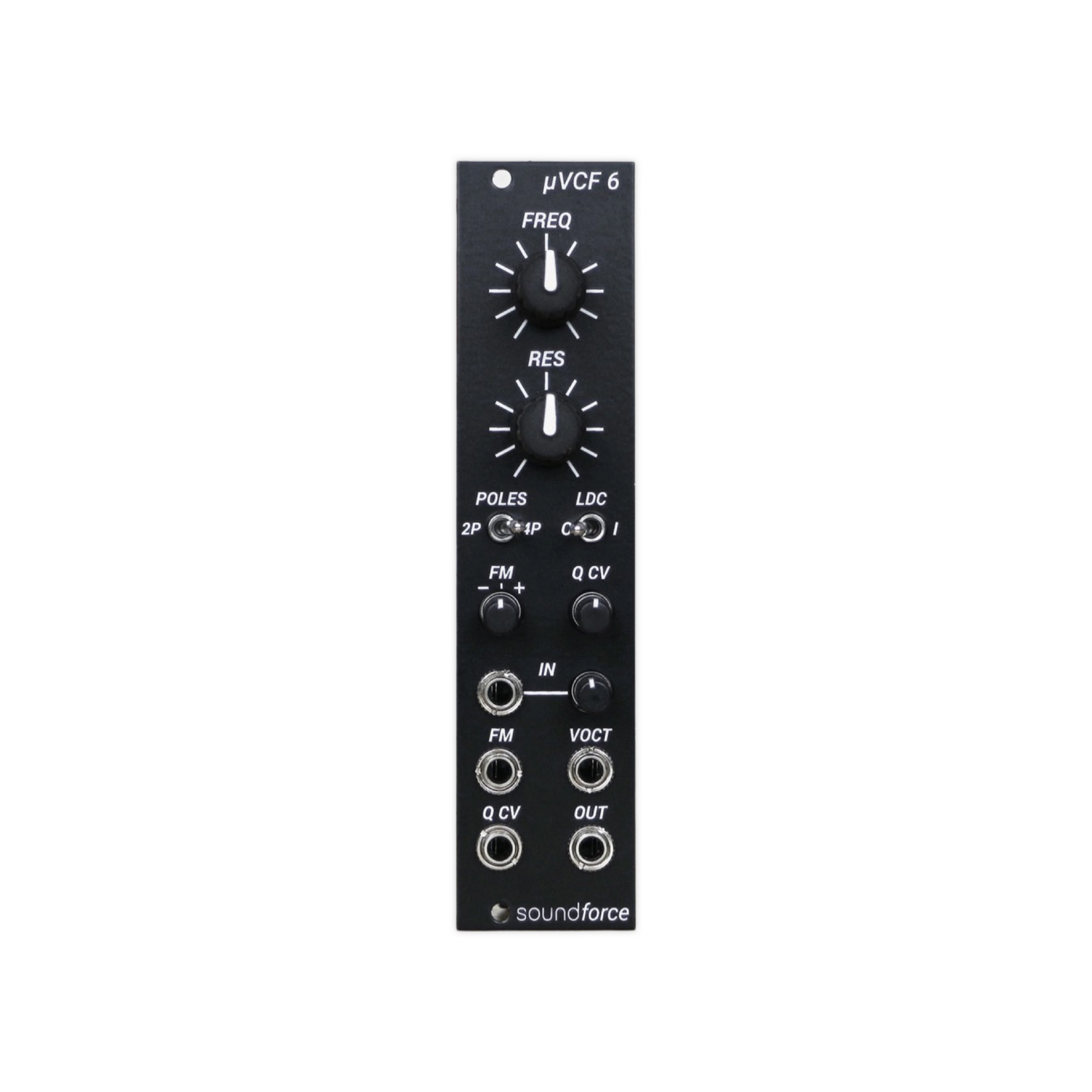 The uVCF 6 is a Eurorack interpretation of the Juno 60/106 VCF section. It’s the little brother of the VCF/VCA 6, without the VCA and HPF in a compact(er) 6HP format.
