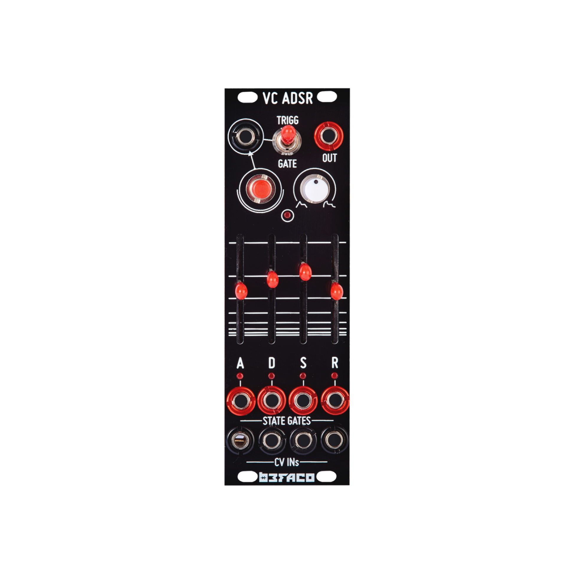 - Bicolour LEDs glow red when the output is positive and green when negative meaning this module works well as a CV monitor.