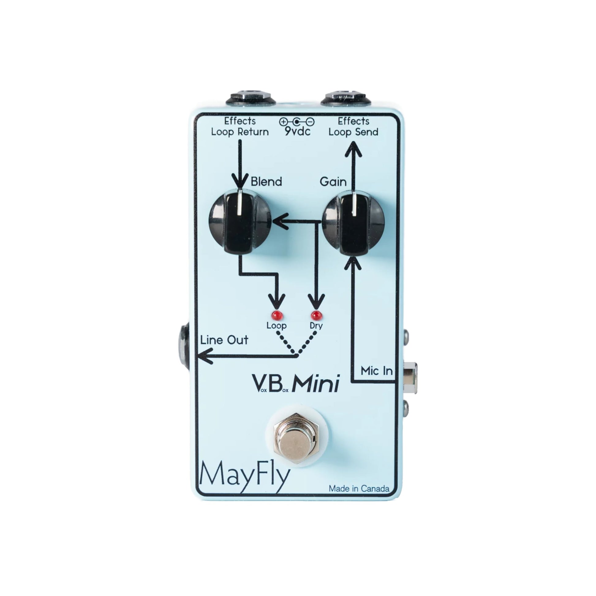 The VoxBox Mini features the same XLR input, the same studio quality microphone preamp, the same buffered effects loop, and the same silent FET effects switching. It works pretty much the same way: Pug in your mic, plug your effects into the loop, set your gain and effects blend, and press the footswitch when you want to engage the loop. The signal goes out via a 1/4" TS jack to your mixer, DAW, or amp. And the best thing? You can use ANY effects!
